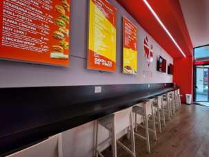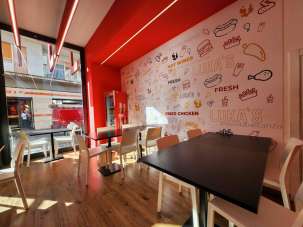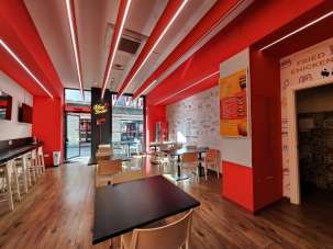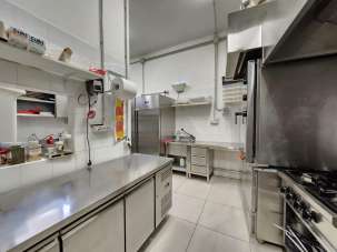 Bagno attrezzato più antibagno/spogliatoio, deposito + scaffalature, lavaggio (lavandino doppia vasca + gocciolatoio. Cucina comprensiva di lavandino per verdure + lavabo in acciaio, porta teglie con teglie annesse, due friggitrici da banco 11 litri di cui una a doppia vasca 4 litri + 4 litri; forno Italforni con alimentazione elettrica; affettatrice lama 35 professionale.