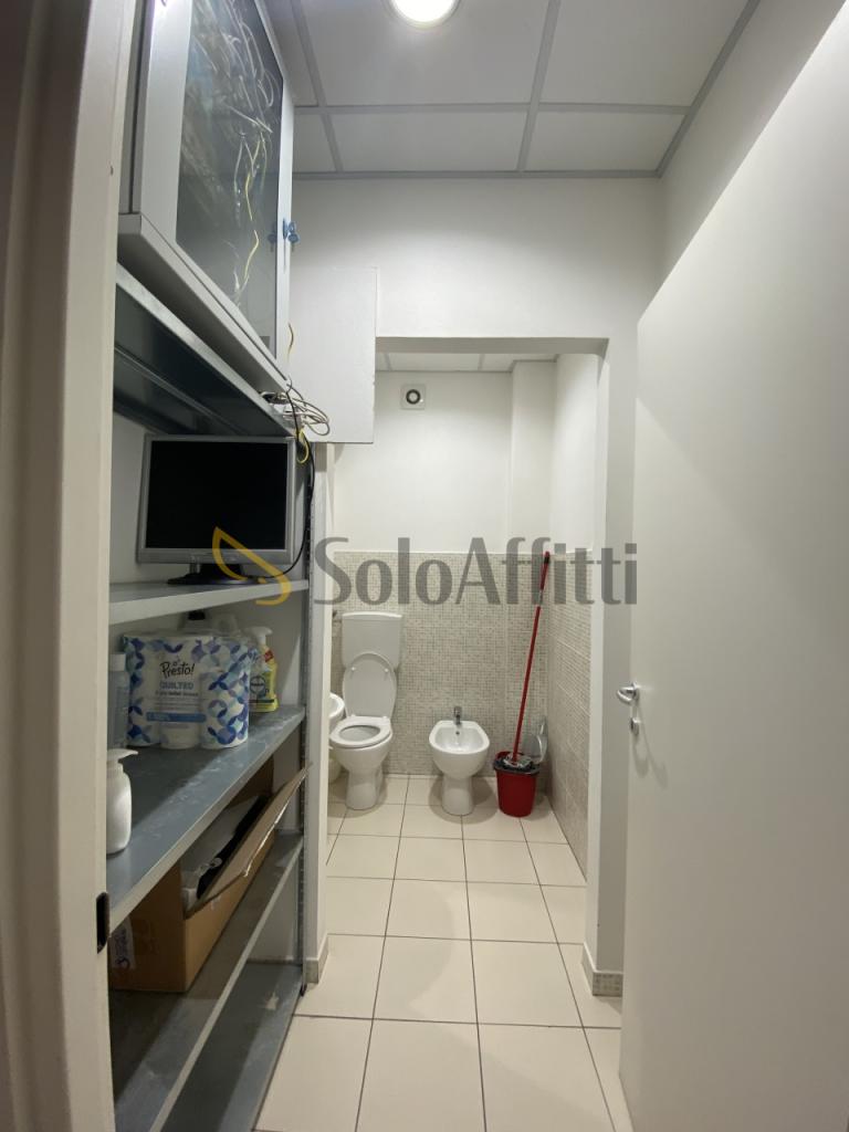 In zona di forte passaggio veicolare, affittasi ufficio al piano terra di mq. 46. Composto da ingresso autonomo con vetrina, vano open space e servizio. Posto auto esterno. No spese condominiali.