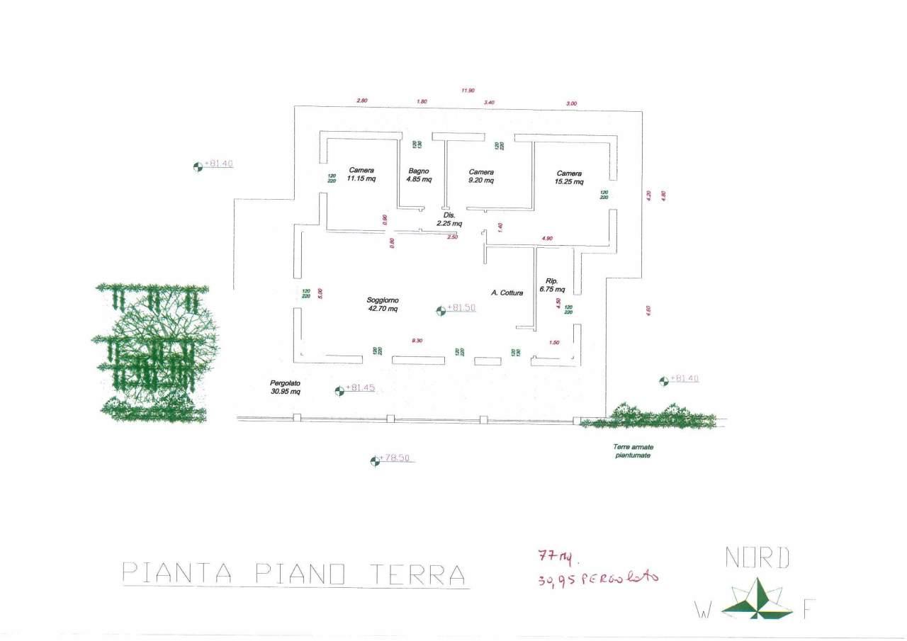 In zona Residenziale e soleggiata proponiamo casa indipendente di mq.150 distribuita su due livelli con giardino di mq.1400 e posti auto in fase di realizzazione così composta : ingresso da terrazzo di mq.30,95 con pergola in ampio soggiorno con angolo cottura di mq.42,70 ripostiglio, 2 camere doppie,1 singola, bagno. P. Seminterrato : ampia taverna, cantina, bagno, loc lavanderia, camera per ospiti. Possibilità di personalizzare gli interni. Disegni visionabili in agenzia.