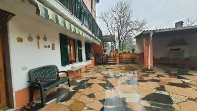 Completano la proprietà una corte ed una giardino per un totale di circa 500 mq, due garage di circa 27 mq ed un portico e due cantine.