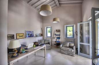 Elba Rif.502 Tra Portoferraio e Porto Azzurro proponiamo prestigioso casale ubicato nel verde. La proprietà è il risultato dell´unione del lavoro di un team di tecnici qualificati volto alla ristrutturazione e riqualificazione di una proprietà che mantenesse intatte le caratteristiche tipiche del casale perfettamente integrato nella naturalezza del suo paesaggio circostante ma che rispondesse nella progettazione interna ad una strutturazione moderna e minimalista. Internamente si compone di: zona living di 40mq. con soffiti alti piu´ di 4 metri, due camere con cabina armadio e bagno interno; al secondo livello sala da pranzo e cucina, disimpegno camera con cabina armadio e bagno, quarta camera, bagno, lavanderia. Oltre a palestra con bagno, garage, ripostigli. Il tutto caratterizzato da pavimenti in cemento lavorato e soffitti in legno sbiancato. Esternamente la proprietà con giardino recintato di 5.000 mq. è rifinita con pietra del luogo con terrazze e zone prendisole lastricate in quarzite. Sono inoltre presenti porticati, doccia esterna di acqua calda, illuminazione scenografica, pannelli solari, pozzo, cisterna, predisposizione in tutti gli ambienti per allarme, telecamere esterne e filodiffusione. Spiagge a meno di due km, piscina in corso di realizzazione. Trattative riservate.
