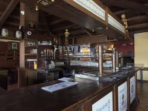 All’interno troviamo una sala ristorazione capiente, con circa 120 posti a sedere, separata dalla zona birreria, dove spicca un affascinante banco all’inglese. All’esterno, un ampio giardino attrezzato offre ulteriori 120 coperti, perfetto per la stagione estiva, con area fumatori e parco giochi per bambini.