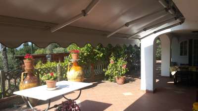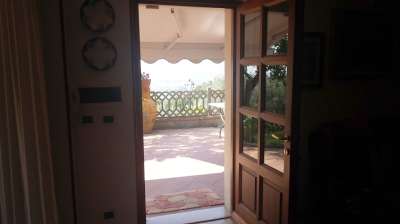 In posizione unica e panoramica, con magnifica vista mare, in contesto residenziale non lontana dai servizi, vendesi villa composta di 2 appartamenti con ingressi indipententi e comunicanti internamente tramite comoda scala interna. Piano terra composto da ingresso in soggiorno con zona cottura, 2 camere matrimoniali, bagno e locale lavanderia, porticato e taverna. Piano primo composto da ingresso, cucina, studio, salone, 2 camere matrimoniali, bagno e ampia terrazza pranzabile con splendida con vista mare. Terreno circostante recintato. Garage e cantina. Buono stato.