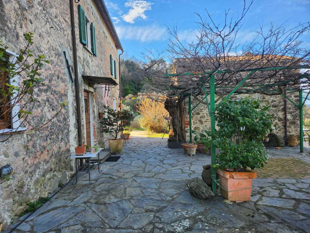 Fosdinovo, in collina con ottima esposizione solare vendesi casa rurale di circa 45000 mq. con vigneto ed uliveto in produzione, tre fabbricati composti da, una vecchia casa agricola indipendente disposta su due livelli, piano terra ingresso, soggiorno, bagno, lavanderia disimpegno cucina con camino, sala da pranzo , dispensa, al piano primo due camere e bagno, sul retro della casa con ingresso indipendentre troviamo due appartamenti, uno composto da soggiorno, cucinotto, disimpegno camera matrimoniale e servizio, ed un altro composto da ingresso indipendente camera con bagno, sul lato nord vi è l´ingresso alla cantina con il laboratorio dell´olio. Sul lato nord all´ingresso della proprietà, lato parcheggio, troviamo una piccola casa indipendente disposta su due piani , piano terra cucina con servizio ed al piano primo la camera matrimoniale. Nello stesso lato trovaimo una bella piana con una piccola piscina ed una cucina per le cene d´estate. Difronte all´abitazione si trova un locale uso studio con al piano sottostante una cantina, Tutta la proprietà, terreni e fabbricati sono in perfetto stato di manutenzione. Nel terreno sono presenti due piccoli ruderi dove è possibile la realizzazione di 4 camere indipendenti.