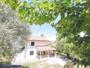 Circondata dal verde e dalla tranquillità, con bellissima vista panoramica, proponiamo in vendita, stupenda villetta singola con ottime rifiniture. Da un ampio portico si accede all´abitazione, che si compone di cucina abitabile, salone doppio e bagno al piano terra; una bellissima scala interna conduce al piano notte, composto di tre ampie camere ed un terrazzo, dal quale si può godere una spettacolare vista delle campagne circostanti e del mare. Terreno circostante 6.845 mq. con con alberi di ulivi, piccola vigna e vari alberi da frutto. Ideale per B.& B., casa vacanza, ma anche da abitare tutto l´anno.