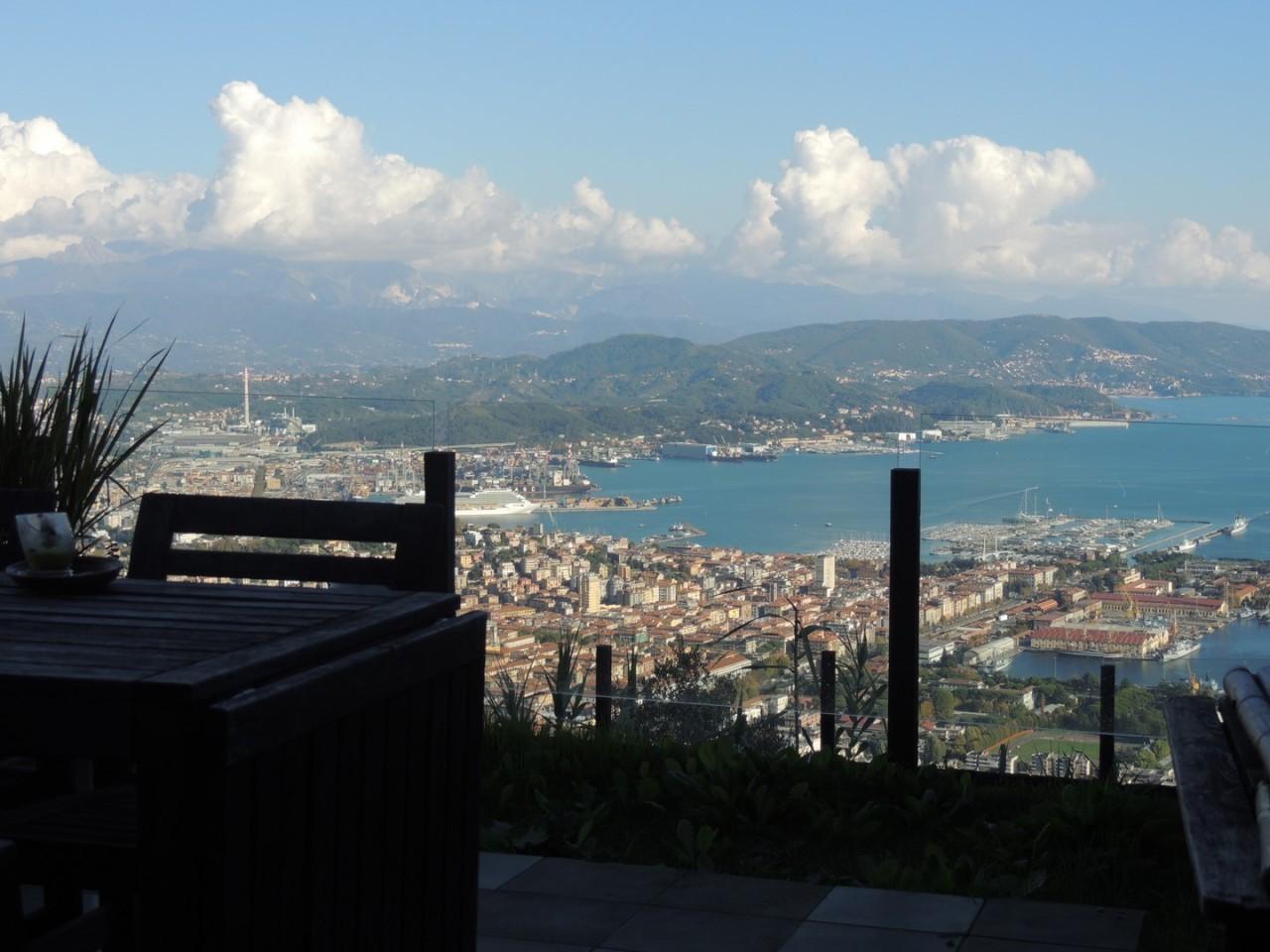 Splendida semindipendente con vista magnifica a 360° sul golfo di La Spezia e Apuane. L´immobile con ingresso indipendente in ampia zona parcheggi ha una metratura di oltre 120 mq. distribuita su tre livelli. Al piano terra soggiorno doppio, cucina abitabile , bagno ; al piano superiore due camere matrimoniali con splendido terrazzo vista mare , cabina armadi e bagno. Mansarda con camera matrimoniale e bagno di servizio.Piscina privata immersa nel verde . Terreno di oltre 1400 mq. , giardino privato .