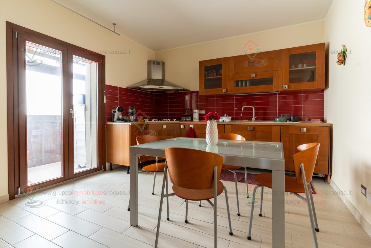 VIA LENTINI: Costruzione 2000, in condominio recintato con ampia disponibilità di parcheggio, appartamento termo-ascensorato, parzialmente arredato (cucina completa con tavolo e sedie, cameretta e parete attrezzata), totalmente ristrutturato nel 2011, climatizzato, composto da ingresso salone, 3 camere, cucina abitabile, bagno, doppio servizio, 3 balconi. Esposizione su 3 lati nord-sud-ovest. Classe energetica D, IPE 44.160 kwh/mq annui, euro 650.00 mensili spese condominiali comprese RIF AF1697. Per info contatti Schiavone Immobiliare Piazza della Vittoria 8 SR, 093169993, ww.gruppoimmobiliaresiracusa.it