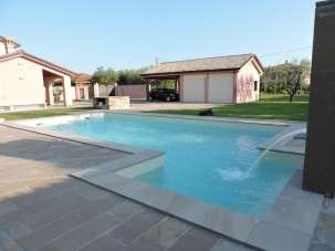 Giardino di circa 2000 mq, arricchito da una splendida piscina. L´area esterna include inoltre posti auto interni e un cancello elettrico.