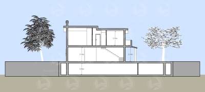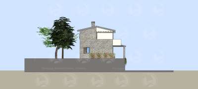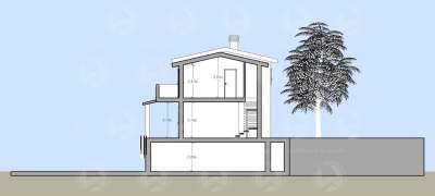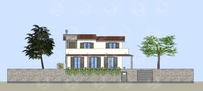 Su questa area è prevista la realizzazione di una villa singola, distribuita su tre piani e così attualmente suddivisa: nel piano seminterrato una cantina di 110 mq. e un box auto di 40 mq. contornati da intercapedine ispezionabile; al piano terra un grande soggiorno living di 60 mq., con antibagno e bagno al piano, piano contornato da un portico di 50 mq.; al primo piano vi sono tre camere dal letto, un bagno e un terrazzo di 31 mq.