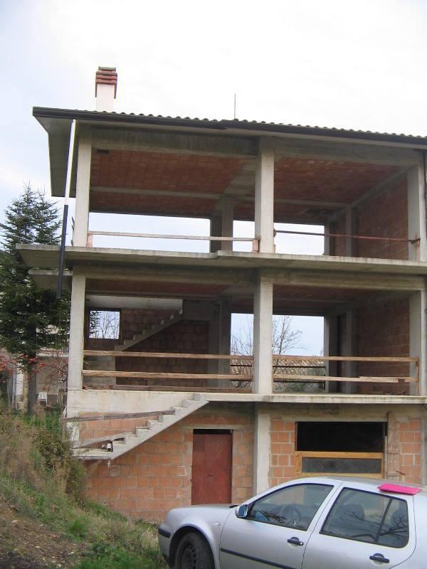 In zona residenziale, nella prima periferia del Paese, struttura grezza di una villetta a schiera di circa 200 mq. complessivi composta al piano terra da taverna con bagno e garage; al primo piano da soggiorno/cucina e bagno; al piano secondo da due camere da letto e bagno. Sottotetto sfruttabile come ripostiglio. Terreno agricolo adiacente di circa 75 mq.