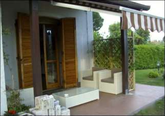 In un contesto esclusivo di residence con piscina e campo da tennis, proponiamo in vendita una splendida villetta bifamiliare semindipendente al piano terra. Questa proprietà offre un ingresso accogliente che conduce a un ampio soggiorno, una cucina funzionale e una zona pranzo ideale per momenti conviviali. La zona notte comprende tre camere matrimoniali e una cameretta, perfette per famiglie numerose o per ospitare amici. Completano la proprietà doppi servizi, un ripostiglio, un giardino privato di 150 m² e un comodo box auto.