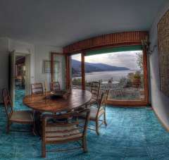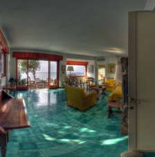 Al piano superiore si compone di ampio salone, sala pranco, cucina con servizio, tre camere da letto e bagno. Al piano sottostante troviamo ulteriori tre camere matrimoniali ciascuna dotata di bagno privato ed accesso alla terrazza.