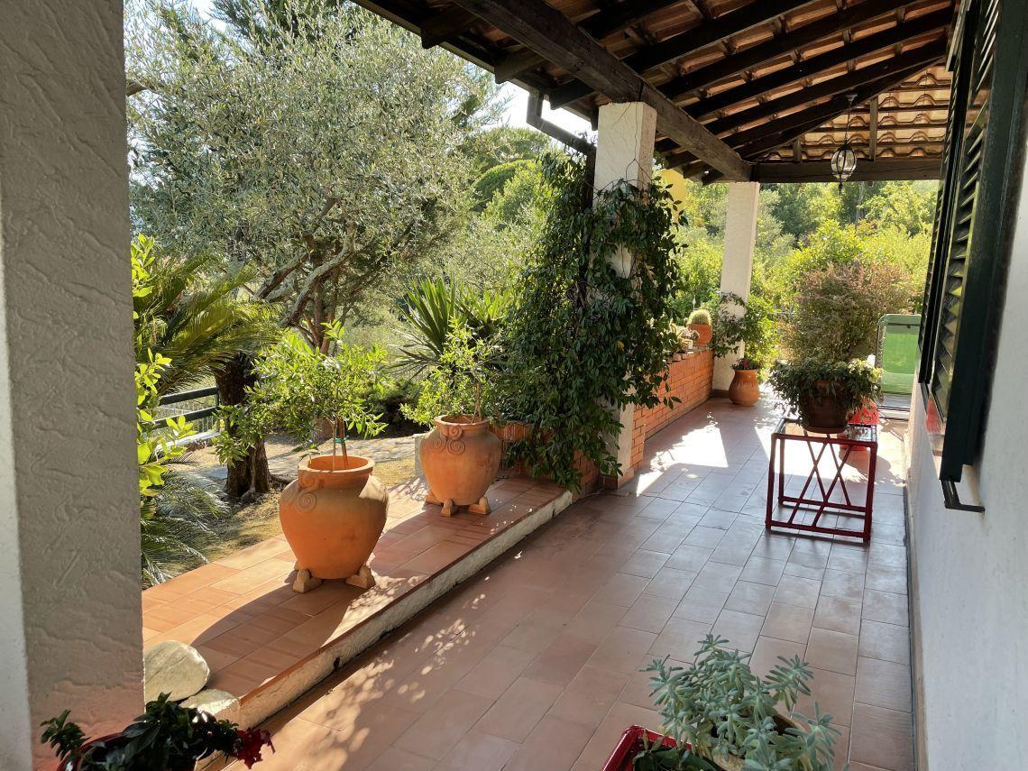 CEPARANA LOC.DEBBIO : In zona collinare con splendida vista sulle vallate proponiamo in vendita villa indipendente di 250 Mq ,disposta su due livelli piu´ locale mansardato al terzo livello. Ingresso,salone doppio,cucina abitabile,tre camere,due bagni, locale lavanderia. Porticato e zona pranzo esterna con barbecue e forno a legna.Dependance,garage doppio.La villa è circondata da ampio giardino e terreno piantumato con ulivi.Ottime le rifiniture generali