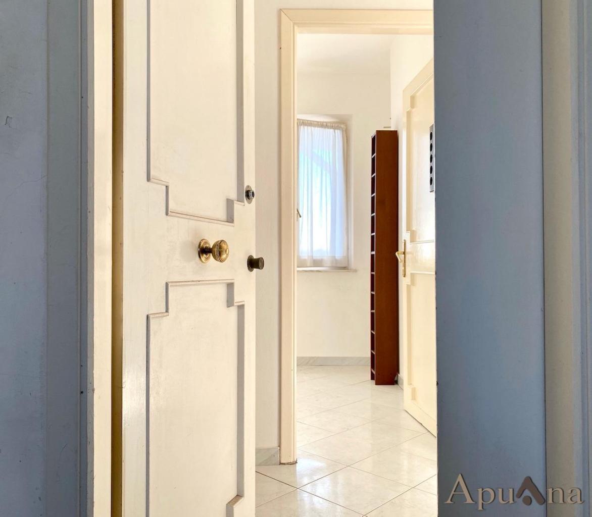 Rif.Ag. MLS-621 - MARINA DI MASSA - ZONA RONCHI - APPARTAMENTO AL TERZO PIANO (con ascensore) DI RISERVATO CONDOMINIO A 750 METRI DAL MARE Nella splendida cornice della zona Ronchi, a circa 750 metri dalle spiagge, si propone in ESCLUSIVA DI VENDITA, appartamento posto al terzo piano (servito da ascensore) di gradevole palazzina di sole 8 unità, edificata alla fine degli anni 60. Questa soluzione, ideale pied a terre per la stagione estiva, si presta, date le comode dimensioni interne, anche come possibile residenza principale. COMPOSIZIONE: sviluppato su una superficie netta di circa 76 metri quadrati, al suo interno si viene accolti dal disimpegno dingresso e da un primo locale che può essere utilizzato come studio. Troviamo poi un comodo SOGGIORNO, luminosissimo e rivolto lato mare, che conduce alla balconata che sovrasta le costruzioni che si trovano nelle vicinanze, facendo godere di una vista aperta e gradevole. La zona giorno, è completata dalla CUCINA ABITABILE, con accesso alla balconata lato monti, dove l affaccio è rivolto alle Alpi Apuane. Percorrendo il breve corridoio, si apre il disimpegno della zona notte, la quale ospita una grande CAMERA MATRIMONIALE (che sfiora i 20 metri quadrati e che gode di doppio affaccio e della possibilità di accedere al balcone), una CAMERA DOPPIA (anchessa con accesso al balcone) ed il BAGNO (finestrato) sufficientemente grande per ospitare un zona lavanderia. L ottimo lorientamento, con tre lati liberi, garantisce una perfetta luce naturale durante tutto larco della giornata. CONDIZIONI DI MANUTENZIONE: buone le condizioni generali dellappartamento, il quale ha comunque necessità di interventi di manutenzione ordinaria, compresa la sostituzione della caldaia, che però non ne limitano un utilizzo anche immediato se necessario. PERTINENZE e CONDOMINIO: la proprietà si completa da una CANTINA fuori terra, al piano terreno dello stabile, con accesso sia dall´interno che dallesterno, e da un POSTO AUTO riservato sull area condominiale, alla quale si arriva tramite cancello sul retro dello stabile. Lappartamento gode dellutilizzo dellascensore (assieme a sole altre due unità dello stabile). La fornitura dell´acqua rientra tra le spese condominiali, mentre il riscaldamento è autonomo. - SC9332248
