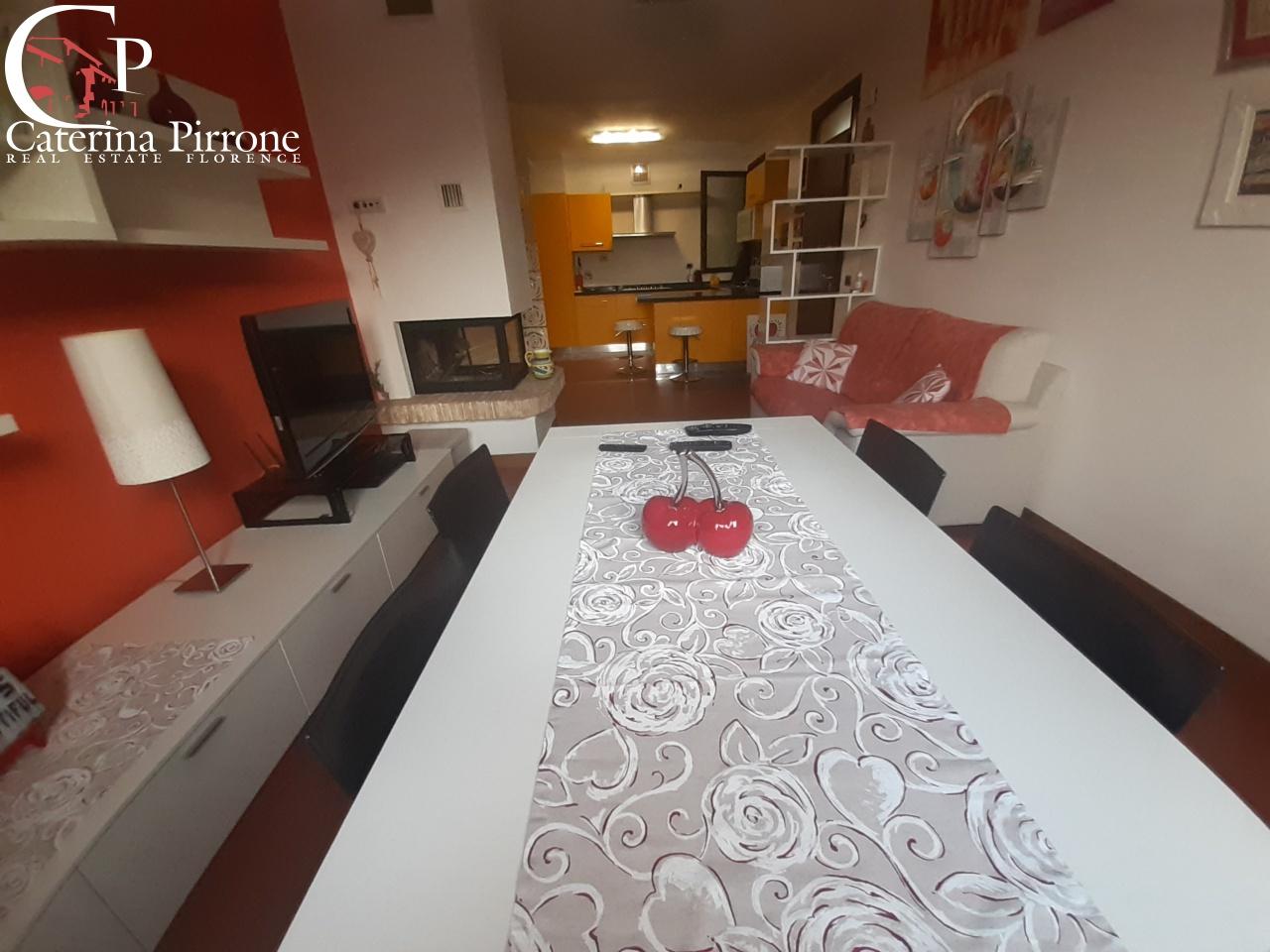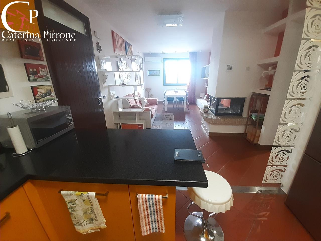 Rufina, localit Scopeti, in contesto tranquillo e silenzioso vendesi appartamento di mq.100 circa posto al primo piano e sviluppato su 2 livelli. L´appartamento composto da ingresso su ampio soggiorno/cucina open space con caminetto realizzato con chiusura a vetro, zona notte con disimpegno con armadio a muro, due camere da letto, altra camera, accesso ad una terrazza esterna e bagno finestrato con doccia. Salendo tramite la scala interna troviamo la ´´soffitta´´, comunque versatile nel suo utilizzo, con ampie vetrate ed una terrazza con bella vista panoramica. L´appartamento dotato anche di pompa di calore, termo singolo, impianto di allarme. Completa la propriet un ampio garage con annessa cantina di mq.28. Euro 200.000 GA101 - SC9076330