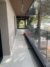 In nuova palazzina di 10 appartamenti in una rilassante pineta, a due passi dal mare, bicamere con zona living con affaccio su terrazza abitabile con parapetto in vetro e giardino di proprietà.