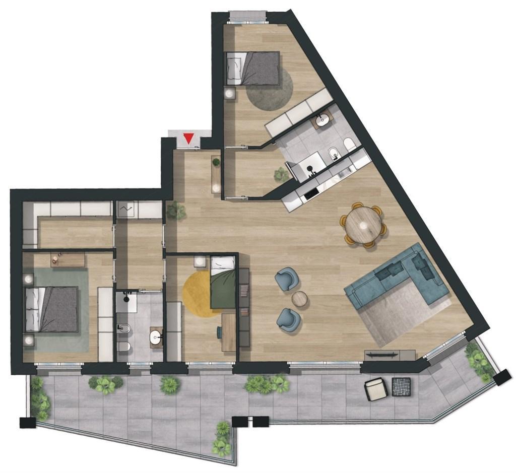 IN QUESTO CONTESTO PROPONIAMO SOLUZIONE QUADRILOCALE DI 153MQ ABITATIVI, OLTRE A 41MQ DI TERRAZZO; L´APPARTAMENTO OCCUPA IL PRIMO PIANO DELL´EDIFICIO MONTIS (UNITA´ ABITATIVA N.13).