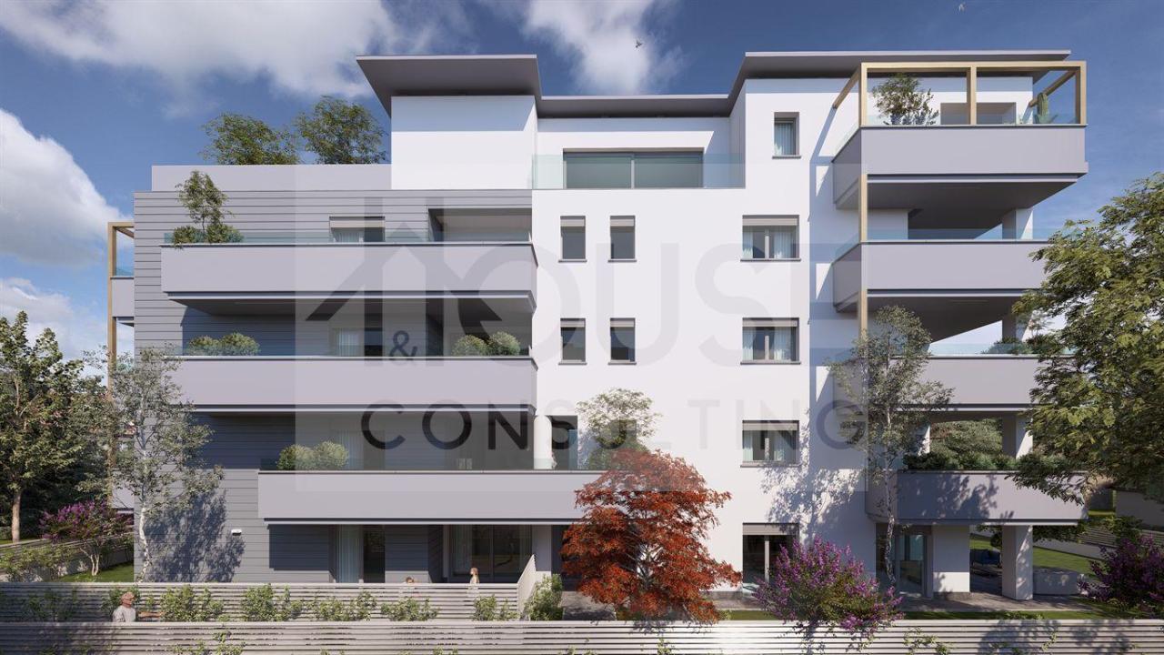 In elegante mini palazzina di 9 unità abitative, proponiamo appartamento con tripla esposizione, composto da: