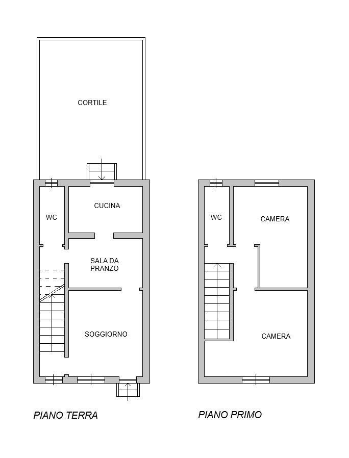 L´appartamento è composta da ingresso, soggiorno, cucina abitabile separata con zona pranzo e accesso al giardino, bagno finestrato. Al piano superiore si accede tramite comoda scala interna dove si trova la zona notte composta da due camere e un secondo bagno. L´appartamento si trova in ottime condizioni interne e viene locato arredato.