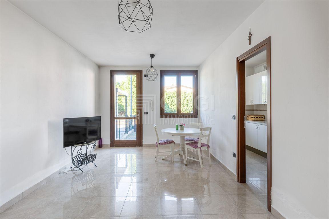 intimità. Sviluppato interamente al piano terra, l’appartamento si apre su una luminosa zona giorno con ingresso indipendente ed ampio soggiorno, seguita da un cucinotto separato, perfetto per mantenere ordine e funzionalità. Un pratico disimpegno conduce al bagno con vasca idromassaggio, una camera matrimoniale con accesso diretto al giardino posteriore ed una camera singola spaziosa. Lo spazio esterno, un giardino fronte/retro di circa 50 mq, regala tranquillità e versatilità: ideale per stare all’aperto, rilassarsi o creare una piccola area discreta e riservata. Il posto auto all’interno della proprietà aggiunge poi un ulteriore tocco di comodità. L’appartamento è ben tenuto, rifinito con gusto e dotato di riscaldamento a pavimento. La richiesta è di € 159.000