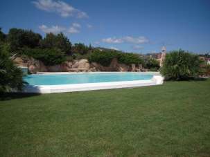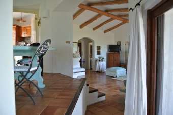 Villa singola con 4 camere da letto 8 posti letto, con ampio giardino e grande piscina ad ossigeno.\nla villa si sviluppa su un unico livello con solo qualche gradino qua e la in tipico stile sardo.\nInterni curatissimi in stile sardo tradizionale\nSalone, sala da pranzo,\nPiccola ma funzionale cucina\ntoilette di cortesia\nLe zone notte sono due, una con 2 camere e bagno un´altra con due camere e 2 bagni.\n( tre matrimoniali ed una doppia).\nQuasi ogni stanza ha il suo spazio esterno molto piacevolmente attrezzato.\nLa casa poi é molto vivibile esternamente con ampia terrazza coperta da tetto in tegole con spettacolare vista mare con barbecue, tavolo da pranzo e divani.\nLa piscina è ampia e non clorata ma con depurazione ad ossigeno curata giornalmente e attrezzata.\nDal solarium al piano superiore, si gode un incantevole vista a 360 gradi sul golfo di Romazzino.\nIl giardino sempre in stile mediterraneo è ben tenuto ed è un incantevole quadro sul mare che infonde una piacevole sensazione di quiete e di intimità.\nIl mare in linea d´aria sarà a circa 100 mt.\nPer raggiungere la spiaggia di Romazzino è sufficiente una passeggiata di non oltre 5 minuti, mentre per arrivare alla spiaggia del Principe bisogna calcolare dai 10 ai 15 minuti.\n\n\nVilla with 4 bedrooms 8 sleeps, with large garden and large oxygen pool.\nThe villa is on one level with only a few steps here and there in typical Sardinian style.\nInterior is carefully devoted to the traditional style, \n Day area is composed by living room, lounge, dining room ,\nSmall but functional kitchen\ncourtesy toilette.\nThe sleeping areas are two, one with 2 bedrooms and a bath room and another with two bedrooms and two bathrooms.\n(Three doubles and one twin)\nalmost every room has its own outside space very nicely equipped.\nThe house is very livable also outside with a large terrace where we find a barbecue, dining table and sofas; and a roof with spectacular sea views.\nthe pool is treated and equipped with oxygen\nFrom the solarium on the top floor, it offers a breathtaking 360-degree views of the Gulf of Romazzino.\nThe Mediterranean-style garden is well maintained and is an enchanting view on the sea that gives a pleasant sensation of tranquility and intimacy.\nThe sea is about 100 mt.\nTo reach the Romazzino beach just a walk of no more than 5 minutes, while to get to the Principe beach you have to calculate from 10 to 15 minutes\n\n - Maggiori Dettagli: Cucina Abitabile, Aria condizionata, Piscina