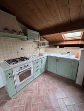app.1) piano terra troviamo soggiorno camera matrimoniale e bagno con box doccia mentre al primo piano mansardato si trova una seconda camera, la cucina ed un bagno con vasca