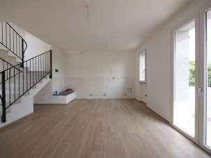 L´ingresso si apre su una luminosissima zona giorno con cucina a vista e accesso a un terrazzino vivibile collegato anche al giardino angolare di 80 mq circa.
