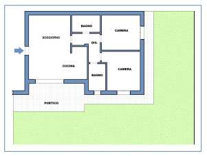 L´ingresso conduce ad un ampio e luminoso soggiorno con una zona cucina e con un grande portico di 18 mq. perfetto per cene all´aperto.