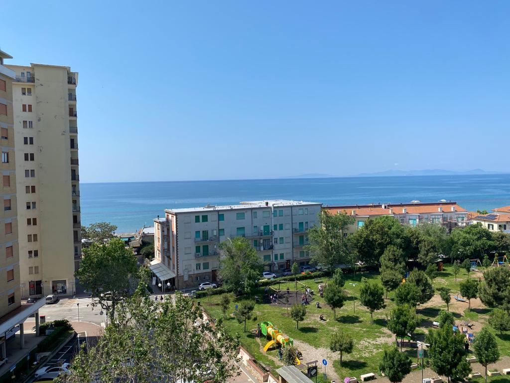Si propone in vendita attico in zona centrale a pochi passi dalla spiaggia di Follonica, con bellissima vista mare. Immobile composto da ampio salone, soggiorno con terrazzo attrezzato a cucina, tre camere grandi e doppi servizi. Competamente ristrutturato recentemente.
