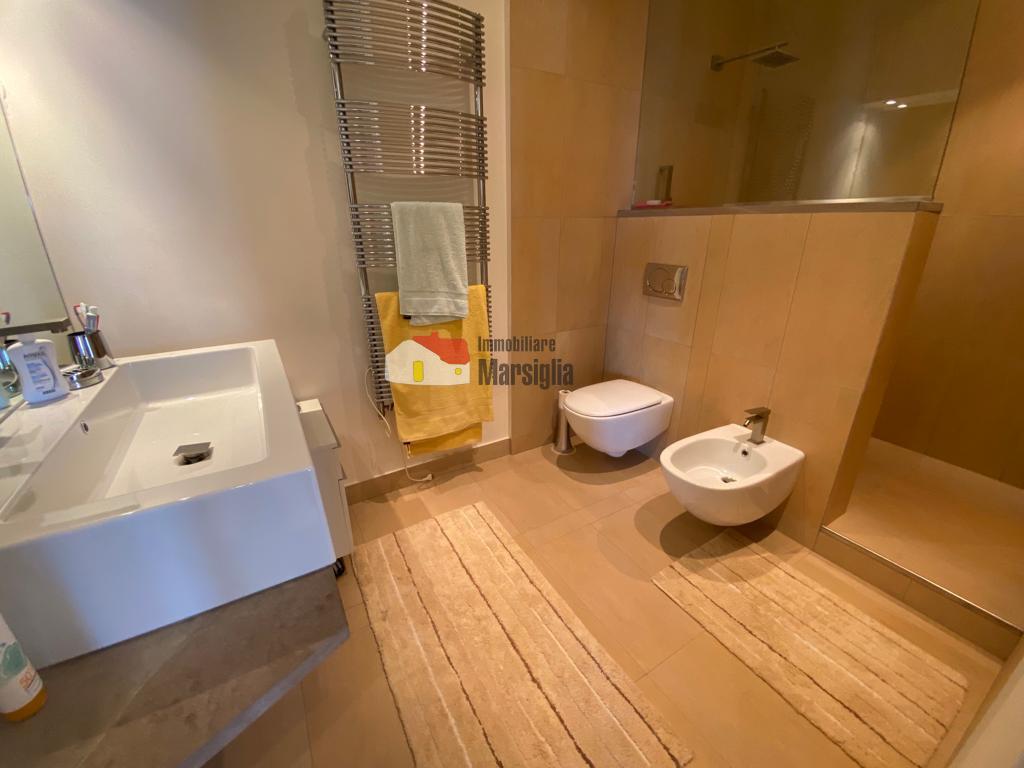 In complesso signorile con portineria, piscina e spiaggia privata, vendiamo appartamento al secondo piano con ascensore con ampio balcone fronte mare.