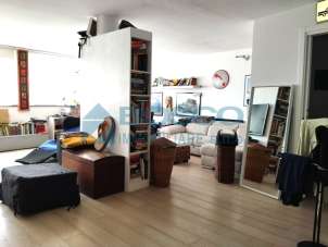 ampio box adiacente a un open space finestrato, ideale come zona hobby, taverna o mini appartamento indipendente dove è presente un servizio e predisposizione per la cucina con vista mare anche da qui.
