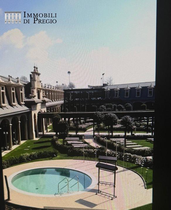 APPARTAMENTO DA SOGNO-CIRCA 200+TERRAZZO+LOGGIA COPERTA\nLe foto pubblicate, su richiesta della proprietà, non sono quelle reali ma dei render di repertorio .\nTrattasi di UN APPARTAMENTO DA SOGNO DI CIRCA 200 - TERRAZZO E GRANDE LOGGIA PROTETTA . Un appartamento da sogno di circa 200 mq di spazi coperti , oltre un terrazzo loggiato (protetto) di circa 50 mq e un terrazzo esagonale di circa 18 mq. BOX DOPPIO. Solo dieci minuti di auto dal centro della città. Presentiamo un immobile esclusivo che rappresenta una vera e propria oasi di lusso e tranquillità, incastonato al 5 piano di un signorile palazzo. Caratterizzato da meravigliose grandi vetrate, l´immobile è pervaso da una luminosità straordinaria, con affacci sul verde circostante e sul cielo sereno. La vista mozzafiato è solo uno dei tanti vantaggi di questa proprietà.\nDUE SPAZI APERTI PER GODERE DEL SILENZIO, DEL SOLE E DEL VERDE CIRCOSTANTE : il primo terrazzo è arredato con un tavolo e può essere contornato da sei/otto sedie, creando uno spazio ideale per cene all´aperto o momenti di relax. Il secondo è una vera e propria loggia (protetta-coperta e arredata ) di circa 50 mq ,anch´essa luminosissima, perfetta per godere della bellezza esterna nelle giornate meno soleggiate e anche piovose. La superficie di circa 50 mq del terrazzo loggiato è arredato con tavoli, divani e poltrone . Lo spazio esterno consente di creare ulteriori spazi vivibili o zone di intrattenimento.\n\nPer quanto riguarda la distribuzione interna, attualmente è vissuto da una coppia giovane e quindi è tagliato sulle loro abitudini, però è possibile ricavare tre camere, aumentando significativamente lo spazio abitativo a più persone .\n\nLa parte più affascinante di questo immobile ,è la gigantesca camera da letto , una vera suite di 60 mq, con bagno interno alla camera, indipendente e fronte terrazzo. Questa suite è dotata di una parete composta da una gigantesca vetrata che regala una vista diretta sul terrazzo, trasformando ogni momento in un´esperienza indimenticabile. L´appartamento ha un secondo ingresso, per garantire la massima privacy o per essere usato dalle persone di servizio.\n\nAttualmente presente nel layout è una grande sala cinema, a lato della grande loggia coperta ,che può facilmente essere convertita in una camera da letto o in una gigantesca cabina armadio. Il grande salone offre la libertà di essere adattato secondo le esigenze personali.\n\nInoltre, la posizione è invidiabile: a tre minuti dalla fermata MM5 , dodici minuti di auto dal centro storico a soli due minuti dal galoppatoio-ippodromo e dal circolo ippico e adiacente , pochi metri, dal recentissimo e fascinoso COMPLESSO TERMALE ( il più grande d´ITALIA : 16.000 mq. di parco , 10 ( dieci) piscine con acqua termale -tre SPA- dieci cabine massaggio , ristoranti -bar ) recentemente inaugurate , rendendo questo immobile ancora più attraente per chi ama la natura e le attività all´aria aperta.\nQuesto complesso immobiliare è stato scelto come nuova residenza da una selezione di illustri personaggi famosi, tra cui campioni olimpici, famosi cantanti della scena musicale mondiale e importanti imprenditori ,anche perché è protetto da un servizio di portineria H24 e SORVEGLIANZA NOTTURNA.\nIl complesso è molto ambito anche da stranieri . Le facciate sono state ristrutturate nel 2023.\n\nCon un prezzo di richiesta di 1.280.000 and euro;, questa proprietà rappresenta un investimento unico nel suo genere, un vero gioiello nel cuore della città. Non lasciarti sfuggire l´opportunità di vivere in un complesso immobiliare esclusivo e circondato da verde e con all´interno un parco affascinante. Spese condominiali circa 8.900,00 annui .\nUno dei pochi complessi immobiliari dove eleganza e comfort si fondono perfettamente!\n\nLe metrature, la planimetria ed i dati degli immobili qui pubblicati sono del tutto indicativi e non potranno essere utilizzati come parte integrante in un eventuale contratto di vendita o di locazione delle proprietà. Per ulteriori informazioni non esitate a contattarci al numero 02.89.00.772 ( dieci linee) . Whatsapp: 3349858315. www.immobilidipregio.com. Agenzia and quot;Immobili Di Pregio Srl and quot;. Oltre trentacinque anni di esperienza .