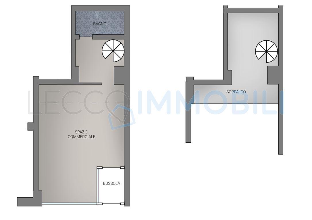 CALOLZIO Centro - Proponiamo in locazione soluzione commerciale di circa 40mq composta da area negozio, retro, bagno di servizio oltre a piccolo spazio soppalcato ad uso magazzino/archivio. Gli interni si presentano rifiniti con pavimentazione in laminato e impianto di aria condizionata. L´immobile è inserito in un condominio e dispone di una vetrina esposta direttamente sulla via Galli. Le caratteristiche della soluzione proposta la rendono ideale per varie tipologie di negozio o piccoli uffici. Cantina al piano interrato accessibile dal vano scala e ascensore dello stabile. Si sottopone contratto di locazione commerciale di 6+6 anni. Immobile subito disponibile, con basse spese di gestione.