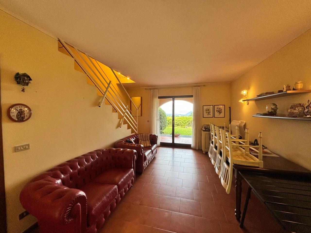 POLPENAZZE DEL GARDA, nella zona collinare affinaco all´ingresso del paese, comodo ai servizi, proponiamo in vedita in residence con piscina, e parco condomiale con solarium e zona ricreativa per i più piccoli. villetta a schiera , con ampia zona giorno, che affaccia su portico esterno e sul giardino di proprietò, la zona living ha la cucina separata. un bagno di servizio con doccia finestrato. la zona notte colloata al primo ed ultimo piano abbiamo un´ampia camera da letto matrimoniale con balcone vista lago, la seconda camera ha un balcone di ampie metrature che affaccia sul giardino condominiale, il secondo bagno completo di vasca da bagno al piano ha la ventilazione forzata. l´intera villetta ha vista lago sia dalla zona giorno che al primo piano. nella zona interrata , troviamo un ampia e luminosa ,grazie alla bocca di lupo di grandi metrature, taverna con un piccolo angolo come centrale termica. completa la proprietà un ampio garage di proprietà. le immagini, come le descrizioni potrebbero non essere precise, verranno spiegate meglio in fase di appuntamento.