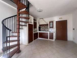 L’ingresso si apre su una luminosa zona giorno con angolo cottura. Sempre al piano terra si trova una camera, e un servizio completo. Al piano superiore mansardato camera matrimoniale con bagno privato, perfetta come suite padronale.