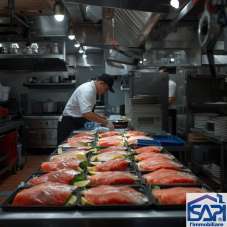 - Cucina di pesce, cruditè, carne e pizza con laboratorio pizzeria e forno Ambrogi a legna a vista