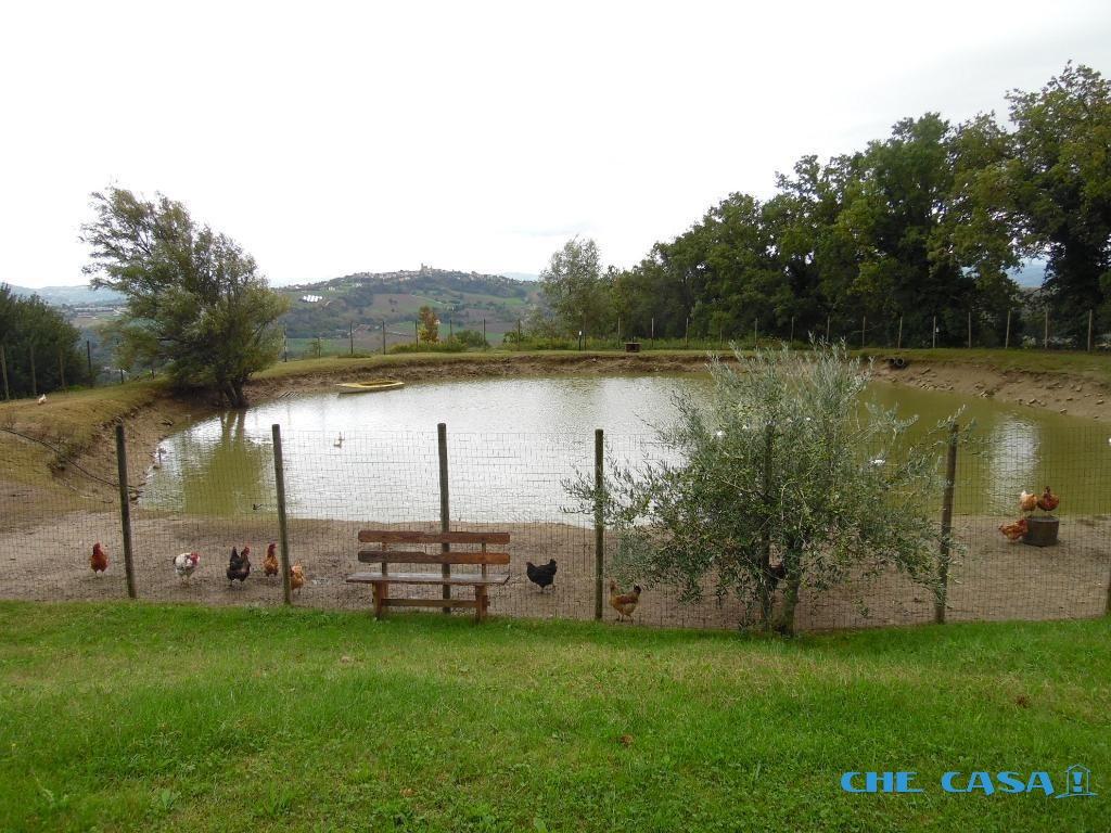 TAVOLETO-PIANDICASTELLO: Casale indipendente disposto su 2 livelli. Piano terra totalmente ristrutturato in stile rustico con travi in legno e sasso a vista. La struttura attualmente è adibita ad attività di agriturismo ed è immersa nel verde con 18 ettari di terreno di proprietà con laghetto per pesca sportiva. L´attività è aperta da 15 anni. Al primo piano è presente l´abitazione composta da soggiorno con cucina, 3 camere da letto e 1 bagno oltre ad ampia terrazza. Inoltre l´attività dispone di 2 camere camere indipendenti per pernottamento dei clienti entrambi molto spaziose e dotate di bagno privato. Per maggiori informazioni contattare il numero 0541-858082 Agenzia Che-Casa! Morciano Di Romagna.\n - Maggiori Dettagli: Cucina Abitabile, Camino, Balcone o terrazzo vivibile, Gli animali sono i benvenuti, Ingresso indipendente, Giardino privato, Possibilità di accollo mutuo