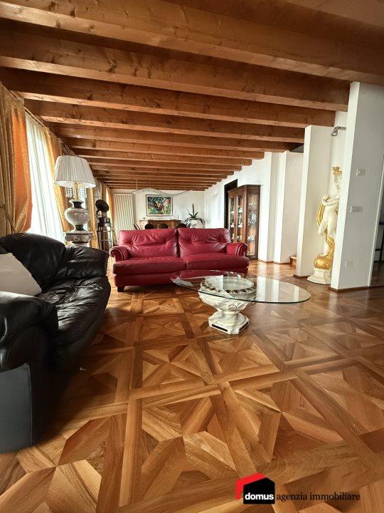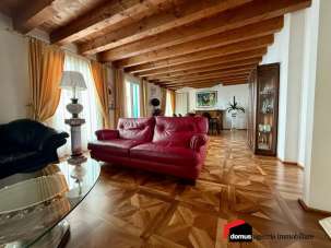 Prestigioso Palazzo terracielo nel cuore del centro storico di Thiene - Eleganza e storia in una residenza unica\n\nNel cuore del centro storico di Thiene, proponiamo un esclusivo palazzo terracielo, un´eccellenza abitativa che coniuga fascino storico, spazi generosi e finiture di altissimo livello. Disposto su tre piani, offre ambienti raffinati e dettagli architettonici che ne esaltano il prestigio e l´unicità.\n\nDistribuzione degli spazi:\n - Piano primo: elegante zona giorno con cucina separata, ampio soggiorno e sala da pranzo, impreziositi da dettagli raffinati e materiali di pregio. La splendida veranda e il terrazzo offrono un´estensione naturale degli spazi interni, perfetti per momenti conviviali e di relax. Completano il piano un bagno e un ripostiglio/lavanderia di ampie metrature.\n - Piano secondo: la zona notte ospita una camera matrimoniale padronale con bagno e cabina armadio, oltre ad altre due ampie camere da letto, servite da un secondo bagno finemente decorato.\n - Piano terzo: un ambiente versatile con quattro stanze da adibire a ulteriori camere, studio, area fitness o spazio ricreativo, oltre a un ulteriore bagno con doccia.\n - Garage doppio, un valore aggiunto in una posizione così centrale.\n\nFiniture e dettagli di pregio:\nQuesta residenza si distingue per la qualità artigianale e il prestigio dei materiali utilizzati:\n - Pavimenti in parquet lavorato a mano, che donano calore ed eleganza agli ambienti, esaltando il carattere storico della dimora.\n - Bagni decorati con mosaici, realizzati con materiali pregiati per un effetto di lusso e raffinatezza. Ogni dettaglio, dai rivestimenti ai sanitari di design, è stato scelto con cura per garantire estetica e funzionalità.\n - Soffitti con travi a vista che conferiscono personalità e charme senza tempo. \n\nQuesto palazzo terra-cielo rappresenta una soluzione abitativa esclusiva per chi desidera vivere nel fascino del centro storico senza rinunciare a spazi ampi, comfort e materiali di altissima qualità. - Maggiori Dettagli: Climatizzato, Cucina Abitabile, Sistema di allarme