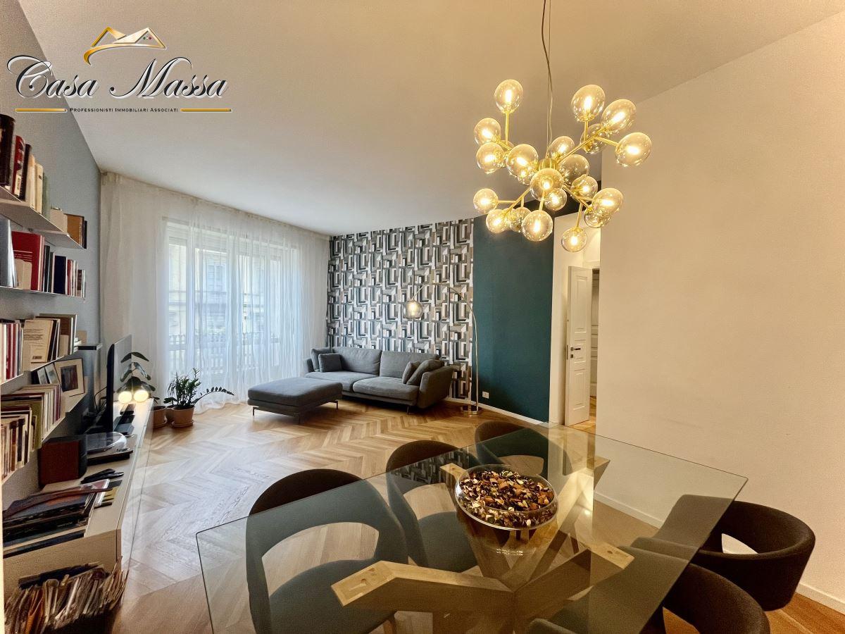 Via Doria, più precisamente affacciato sul largo tra Via Pomba e Via dei Mille dove si erge il monumento a Giuseppe Mazzini, proponiamo in vendita un elegante e luminoso appartamento posto al secondo piano. Situato nel cuore di Torino in zona centralissima comoda ad ogni servizio, lo stabile si presenta in ottime condizioni generali, con significativi interventi, quale tetto e facciata appena realizzati; l´edificio signorile impreziosito ad un ampio androne in marmo è dotato doppio ascensore che collega tutti i livelli compreso il piano interrato dive sono presenti vani ad uso cantina. L´appartamento, di recente ristrutturazione, si presenta in eccellente stato manutentivo, con una distribuzione moderna e razionale ed uno sviluppo, su due arie, per circa 150 mq. Ci accoglie un´ampia zona di ingresso di rappresentanza che distribuisce gli spazi offrendoci in piena esposizione sud la zona giorno caratterizzata da cucina abitabile, con lavanderia, ed un ampio salone con affaccio sul largo, che contribuisce a garantire, grazie anche alle generose superfici vetrate, un altissimo livello di luminosità. Dal disimpegno si accede, oltre ad una prima area di servizio, a due distinte zone notte, l´una con due camere da letto e la seconda con una vera e propria suite con cabina armadio e bagno. Un´area esterna rivolta alla corte interna, caratterizzato da un piccolo terrazzino, completa i balconi alla francese rivolti verso il largo. La pavimentazione omogenea in parquet essenza rovere e la serie di primaria caratura, utilizzata per realizzare l´impianto elettrico, sono alcuni elementi che impreziosiscono questa proprietà dotata di predisposizione per la climatizzazione, videocitofono ed impianto termico a soffitto, con contenute spese di gestione. Oggetto di riqualificazione anche i serramenti verso la facciata principale in alluminio con doppio vetro dotati di taglio termico. Completa la proprietà un vano ad uso cantina. - Maggiori Dettagli: Porta blindata