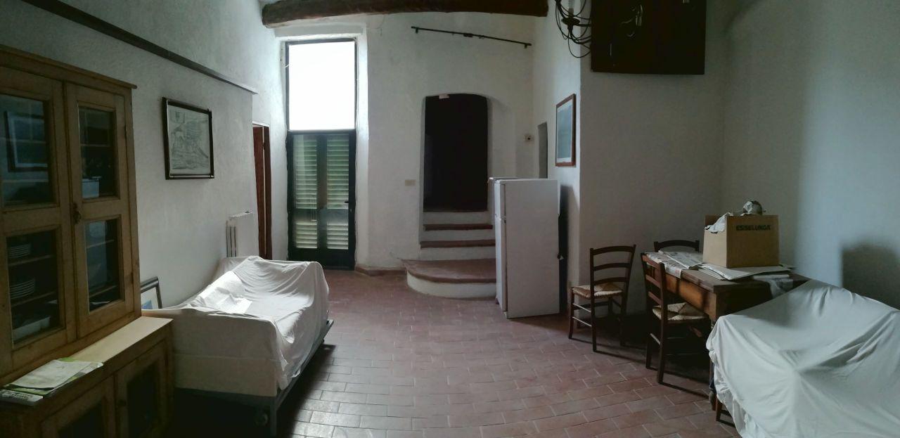 Ameglia, centro storico, casa semindipendente composta da: ampio disimpegno, soggiorno con zona cottura, camera matrimoniale, bagno. Terrazza con vista aperta. Buono stato.