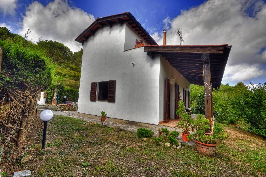 Interessante soluzione di villetta in prima campagna a Portoferraio, disposta su due livelli e con linea tipica toscana, con giardino circostante ed alberi da frutto, ampio porticato per mangiar fuori e due terrazze nella camere al piano superiore.