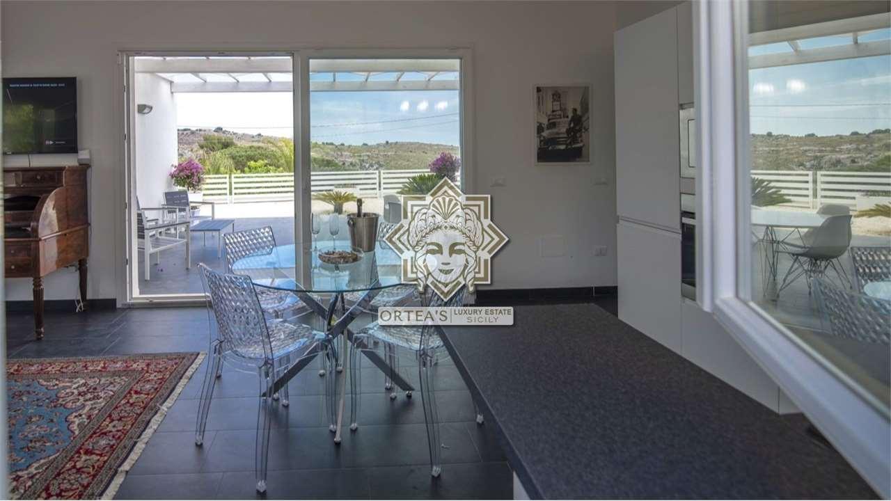 Questa villa in Sicilia su due livelli edificata pochi anni fa con criteri moderni, si presenta con un ottima disposizione degli ambienti interni molto efficiente con il piano terra che dispone di un ampio soggiorno con affaccio su una zona patio con pergolato ed aperta sul fronte panoramico per godere a pieno della gradevole vista con un Eremo edificato nel 1500 che ruba la scena e che domina il costone di roccia antistante; questo ambiente giorno dispone anche di una cucina completa a vista, a completare questo livello le tre camere da letto, i tre bagni con doccia e un utile ripostiglio. Da una grande scala a chiocciola personalizzata si trova una stanza con un´area dedicata al fitness con attrezzi ginnici e con gli accessi ai due terrazzi dai quali la vista panoramica è impagabile, in uno dei terrazzi la predisposizione per aggiungere una spa o per l´installazione di un impianto fotovoltaico.
