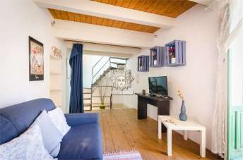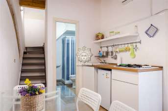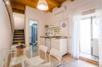 Questa casa si sviluppa su su tre livelli, al piano terra dispone di un piccolo living con cucina a vista ed un locale bagno con doccia, da una scala in ferro e legno si accede al piano primo dove si trova una camera da letto con un bel balconcino, salendo di un altro piano una zona mansarda con zona notte ed un locale a servizio con doccia.