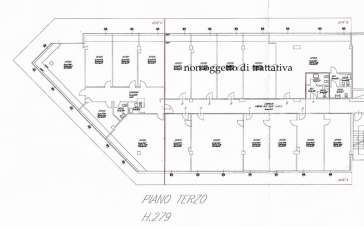 Tramite corridoio centrale le due unità presentano un complessivo di 12 uffici suddivisi tramite pareti in cartongesso e ben 4 servizi; tutti gli ambienti sono estremamente luminosi, si sviluppano su tre lati con una buona vista. Impiantistica DA CREARSI EX NOVO tramite macchine in pompa di calore caldo/freddo.