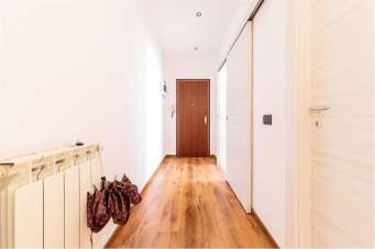 Finiture moderne con pavimenti in laminato effetto legno, infissi in PVC bianco con doppio vetro, porta blindata e impianto di riscaldamento autonomo con caldaia BAXI da 24kw con controllo remoto a gas con classici radiatori.