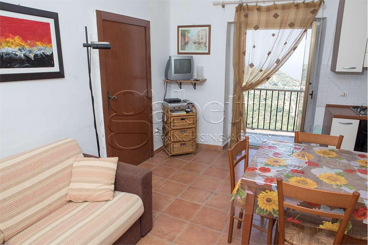 L´immobile, interamente arredato e di recente ripristino, si trova ad un primo ed ultimo piano e si dispone come segue: soggiorno con zona cottura e camino, una camera da letto matrimoniale, bagno (con finestra), ampio balcone panoramico, cantina di proprietà al piano seminterrato.