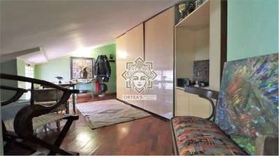 Questa mansarda carica di fascino tipico di questa tipologia è caratterizzata dai tetti spioventi con differenza di quota tra massima e minima altezza che il proprietario ha saputo ottimizzare facendo realizzare degli arredi di qualità su misura. Un altra caratteristica sono i tre terrazzini con tre esposizioni diverse. Gli ambienti sono molto luminosi e ariosi. Tutti ambienti sono pavimentanti con un parquet di alta qualità. Gli infissi esterni se pur ancora in buone condizioni verranno a breve da nuovi ancora più efficienti. L´area recintata condominiale con servizio portineria dispone di un parco alberato e giardini comuni e soprattutto di un area parcheggio con molti posti auto.