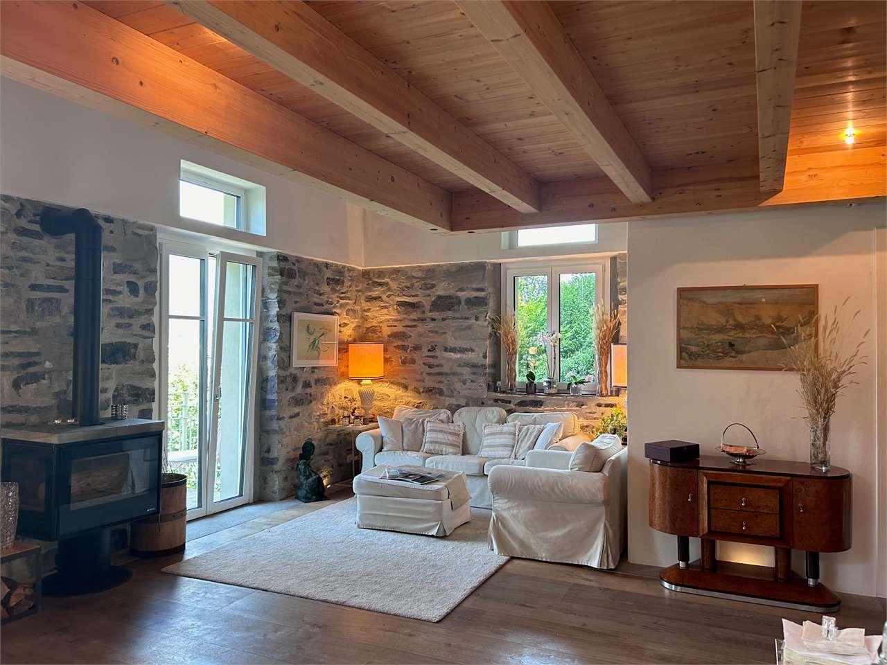 Servirebbero parole poetiche per descrivere questa proprietà completamente avvolta da un´atmosfera fiabesca. Ogni finestra è un quadro dipinto che raffigura il lago, le sue armoniose montagne con i colori delle stagioni; la luce del sole, presente sin dal mattino, la rende sempre luminosa e lucente anche durante il freddo inverno; privacy e tranquillità ne sono l´essenza; circondata da verdi giardini decorati da piante e fiori.