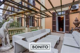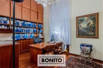 *Le condizioni di pagamento sono: EURO. 1.593.000 più una rata mensile di EURO 679,50 per un mutuo a tasso fisso 2,760% (TAN Fisso), TAEG 3,22%, durata 15 anni, Mutuo Banca Credem. L´appartamento proposto è un elegante studio professionale, attualmente accatastato A/10 (ufficio) ma facilmente trasformabile in A/2 (Abitazione), composto da ben 8 camere, due bagni, una grande sala posta su un soppalco e un terrazzo al secondo piano (primo catastale) di una palazzina umbertina della metà dell´800 in via Sardegna 50, nel rione Ludovisi, completa di servizio portineria e ascensore. Si tratta di una proprietà esclusiva ed elegante, il cui ingresso avviene su un ampio disimpegno che conduce a spazi differenti: una bella scala in legno porta al piano soppalcato, una grande sala finestrata accogliente e ottimamente realizzata con materiali di pregio e un soffitto a botti stuccato. Al piano inferiore una porta fa spazio a un lungo corridoio ove sono distribuite tutte le camere su entrambi i lati, ampie e ottimamente illuminate, arricchite da armadi e librerie in legno pregiato su misura. Una di queste ha accesso a un grande terrazzo ideale per i momenti di relax che affaccia direttamente sulle mura aureliane, in una dimensione assai tranquilla. In questa area è presente anche una piccola stanza/ristoro dove sono stati inseriti i due bagni, ristrutturati in stile moderno ed entrambi finestrati. L´estensione e la distribuzione degli spazi suggeriscono sicuramente la possibilità di mantenere l´immobile ad uso studio, ma con ingegno e creatività è possibile trasformare gli ambienti a proprio piacimento. Gli affacci avvengono su due lati della palazzina. A completare la proprietà boiserie in legno scuro, pavimenti in parquet, stucchi sul soffitto e sui muri, aria condizionata, riscaldamento autonomo con radiatori, infissi in alluminio doppio vetro, sistema di allarme ad uso interno ed esterno, porte in legno, porta blindata, una terrazza di 49 mq e una cantina di 20 mq. Il rione Ludovisi si trova a ridosso dei Parioli, in una zona comunemente denominata Vittorio Veneto, a pochi passi da Villa Borghese e piazza Fiume. Il quartiere si distingue per la quantità di servizi al cittadino e per una fitta rete di trasporto pubblico, ideale anche per lunghe passeggiate alla scoperta delle bellezze architettoniche locali e all´insegna di una eccellente qualità della vita.