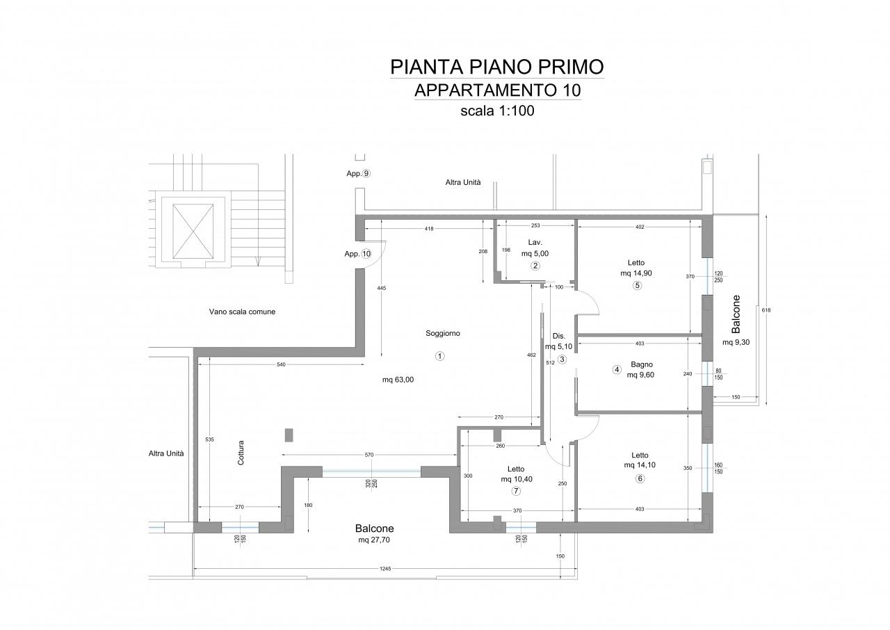 L´appartamento in oggetto sarà composto da doppi servizi, due ampie camere matrimoniali e terza camera ed una zona giorno importante di oltre 60 mq calpestabili da poter arredare a propriio piacimento.